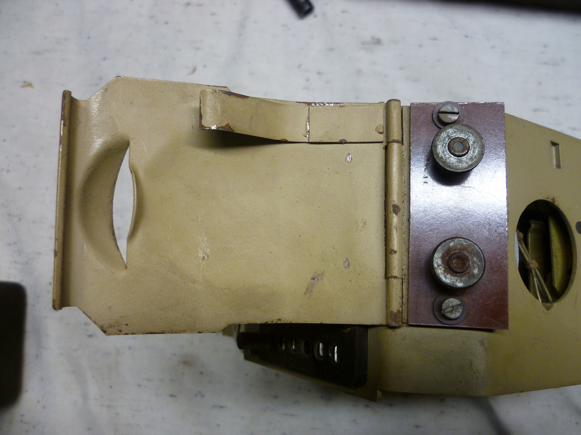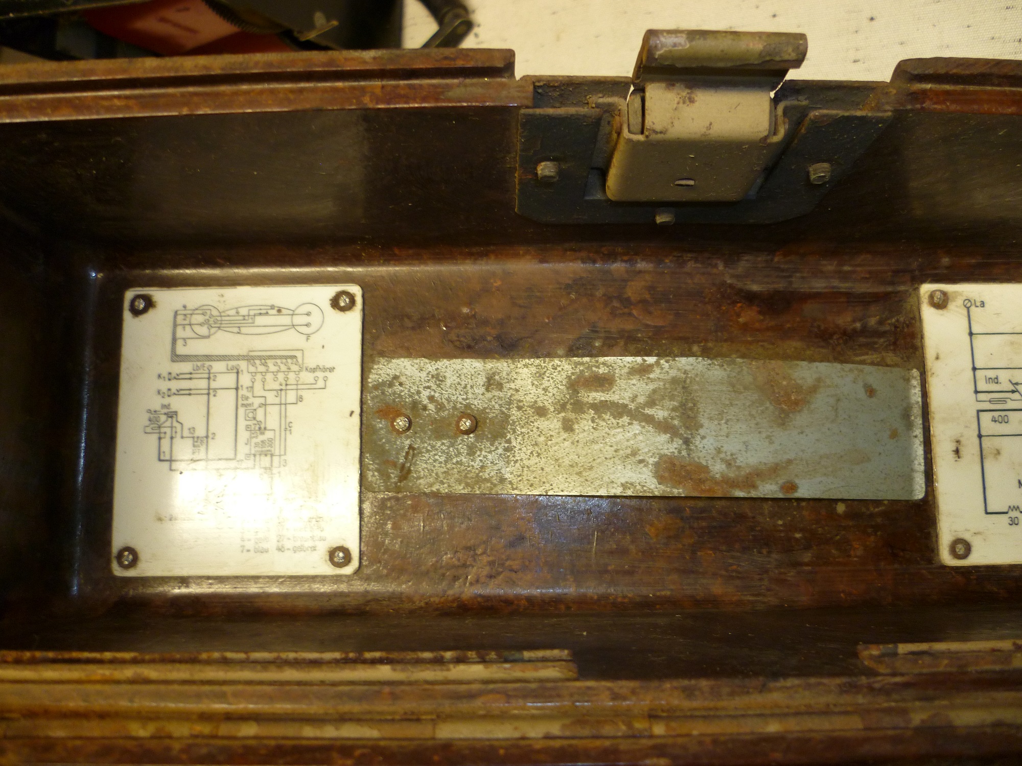 Noch eine Besonderheit, die auf eine sehr späte Fertigung schliessen lässt, sind die verschiedenen Farbtöne (Grau und Gelb) der Eisenteile am Gerät und Gehäuse-Beschlägen. Es wurde scheinbar alles verbaut, was verfügbar war –gerade zum Kriegsende hin.